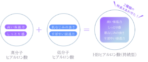 乾燥ケアで重要なのは「保湿力」。ベルフェ モイスチュア エッセンスは、2種類のヒアルロン酸(高分子ヒアルロン酸+低分子ヒアルロン酸)を組み合わせた保湿成分が配合されています。